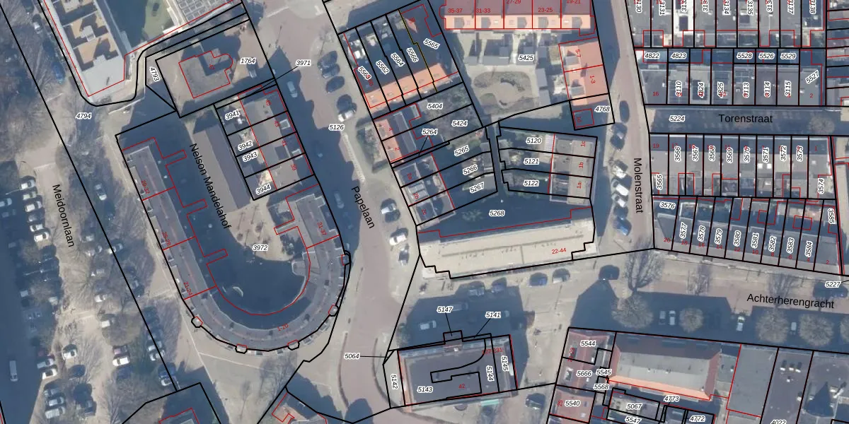 Gebruik de zoekbalk of klik op een perceel voor informatie over de adressen binnen dit perceel.