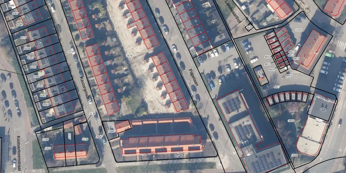 Het perceel waarop Papelaan 67 staat heeft een oppervlakte van 7172 m². Dit is een zeer groot perceel. De perceeloppervlakte wordt geregistreerd door het Kadaster. Gedetailleerde informatie over de maten van dit perceel kunt u vinden in het rapport Kadastrale kaart met maatvoering van Papelaan 67.