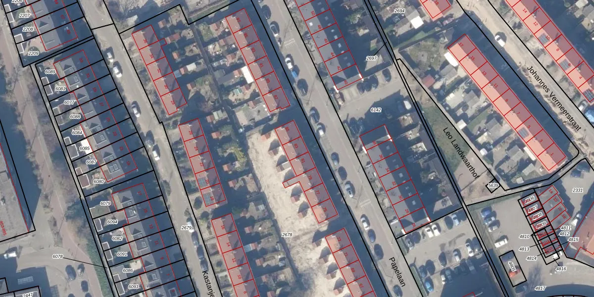 Het perceel waarop Papelaan 83 staat heeft een oppervlakte van 7172 m². Dit is een zeer groot perceel. De perceeloppervlakte wordt geregistreerd door het Kadaster. Gedetailleerde informatie over de maten van dit perceel kunt u vinden in het rapport Kadastrale kaart met maatvoering van Papelaan 83.