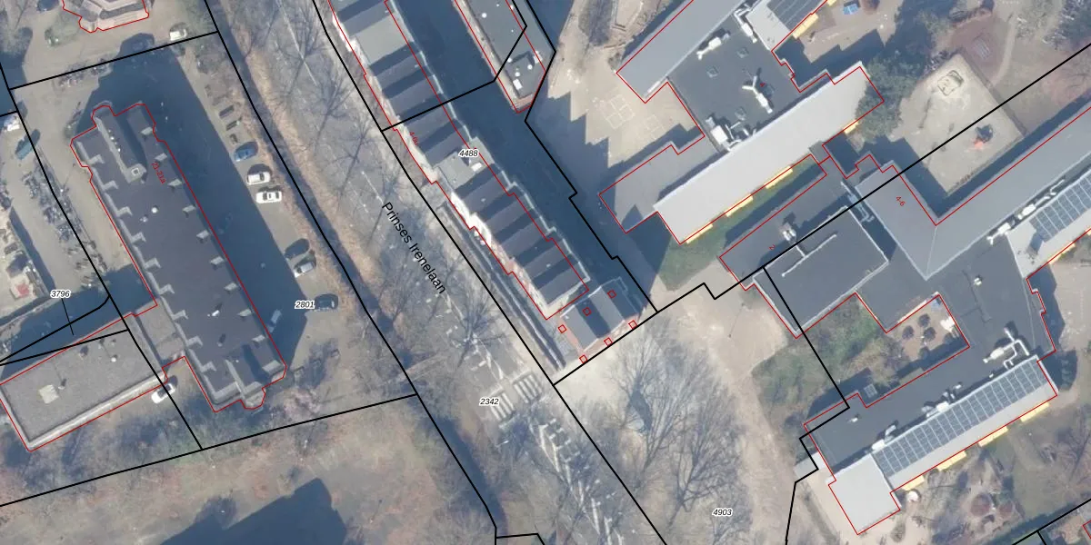 Het perceel waarop Prinses Irenelaan 4-a staat heeft een oppervlakte van 1397 m². Dit is een zeer groot perceel. De perceeloppervlakte wordt geregistreerd door het Kadaster. Gedetailleerde informatie over de maten van dit perceel kunt u vinden in het rapport Kadastrale kaart met maatvoering van Prinses Irenelaan 4-a.