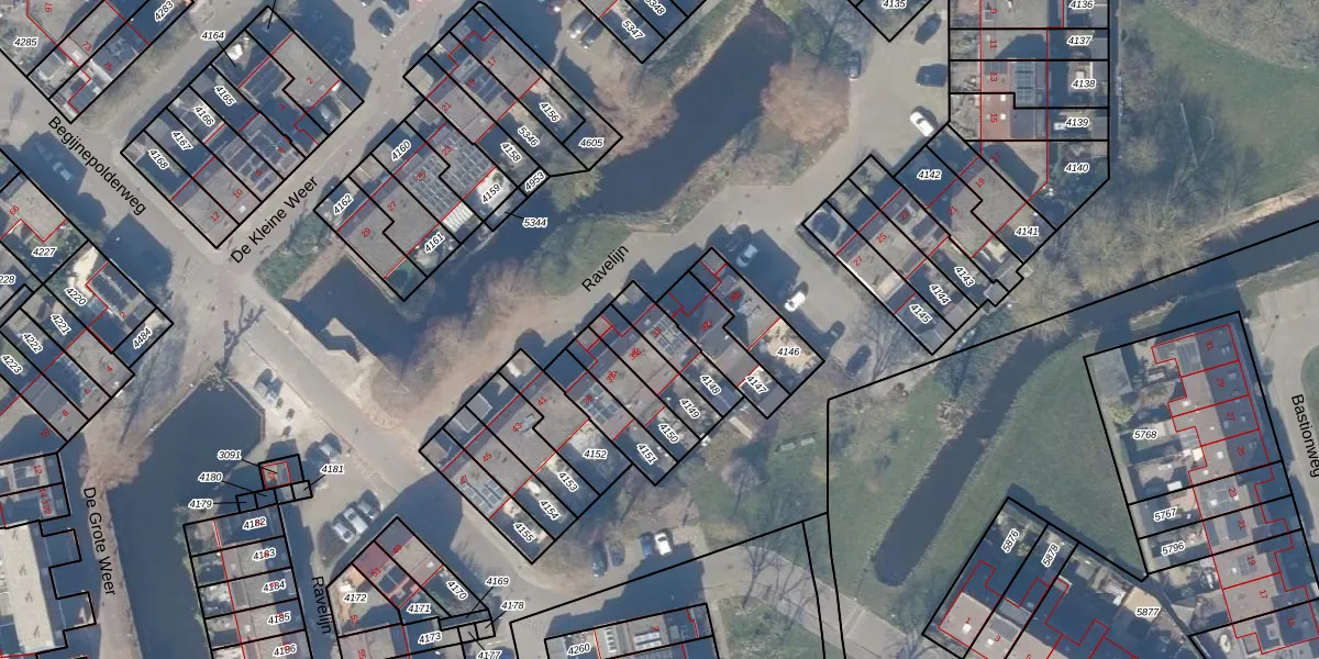 Gebruik de zoekbalk of klik op een perceel voor informatie over de adressen binnen dit perceel.