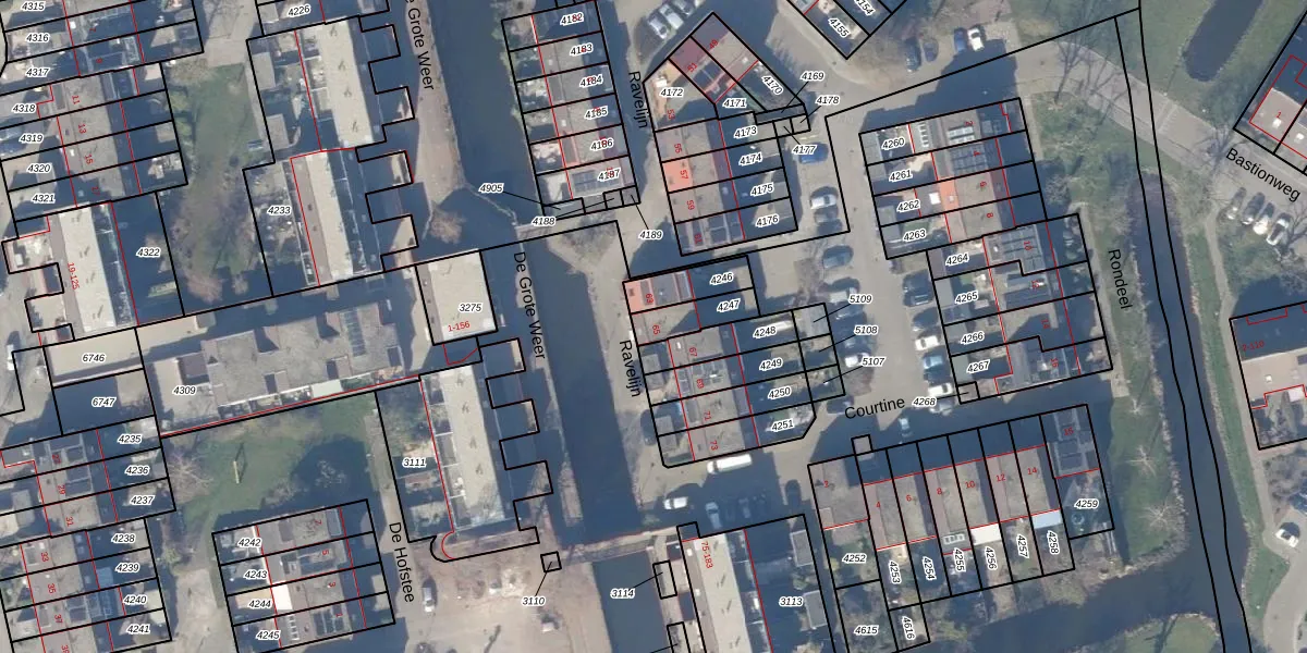 Het adres is gelegen op perceel 4247 in de sectie B en de kadastrale gemeente Weesp. De kadastrale aanduiding is aldus WEE02-B-4247. Het perceel is 91 m² groot. Dat is kleiner dan de gemiddelde perceeloppervlakte in Weesp, dat op 2523,05 m² ligt. De grootste perceeloppervlakte in de kadastrale gemeente is 27,8 ha. De kleinste oppervlakte bedraagt 0 m². Er zijn geen andere adressen aanwezig op het perceel. In de Basisregistratie Kadaster (BRK) werden de grenzen van het perceel geregistreerd op 24-06-2004.