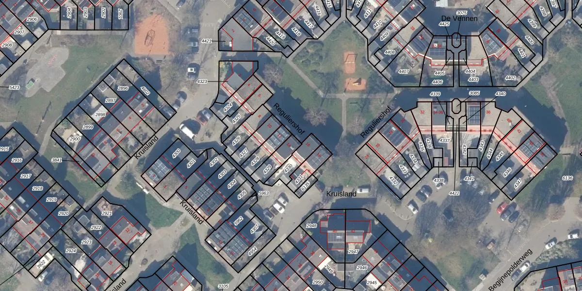 Reguliershof 14 is gelegen op kadastraal perceel WEE02B4329. Deze kadastrale aanduiding is uniek en wordt gebruikt door het Kadaster om eigendomsrechten en andere zakelijke rechten vast te leggen. Het perceel maakt onderdeel uit van de kadastrale gemeente Weesp.