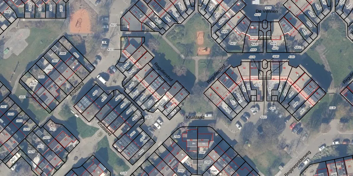 Het perceel waarop Reguliershof 16 staat heeft een oppervlakte van 105 m². Dit is een middelgroot perceel. De perceeloppervlakte wordt geregistreerd door het Kadaster. Gedetailleerde informatie over de maten van dit perceel kunt u vinden in het rapport Kadastrale kaart met maatvoering van Reguliershof 16.