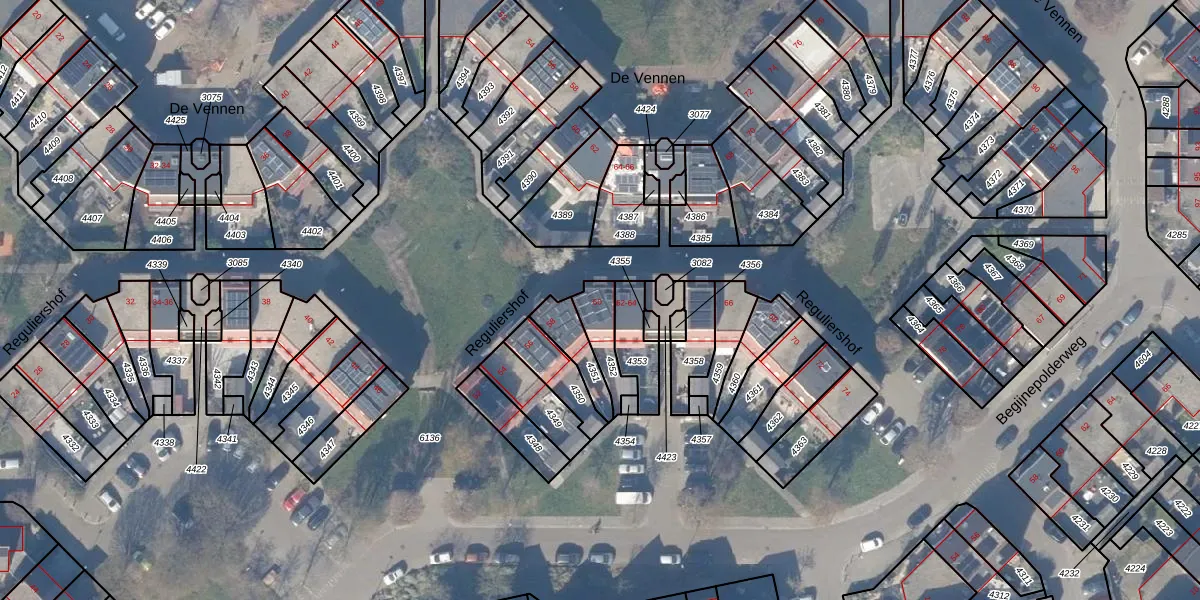Het perceel waarop Reguliershof 60 staat heeft een oppervlakte van 96 m². Dit is een klein perceel. De perceeloppervlakte wordt geregistreerd door het Kadaster. Gedetailleerde informatie over de maten van dit perceel kunt u vinden in het rapport Kadastrale kaart met maatvoering van Reguliershof 60.