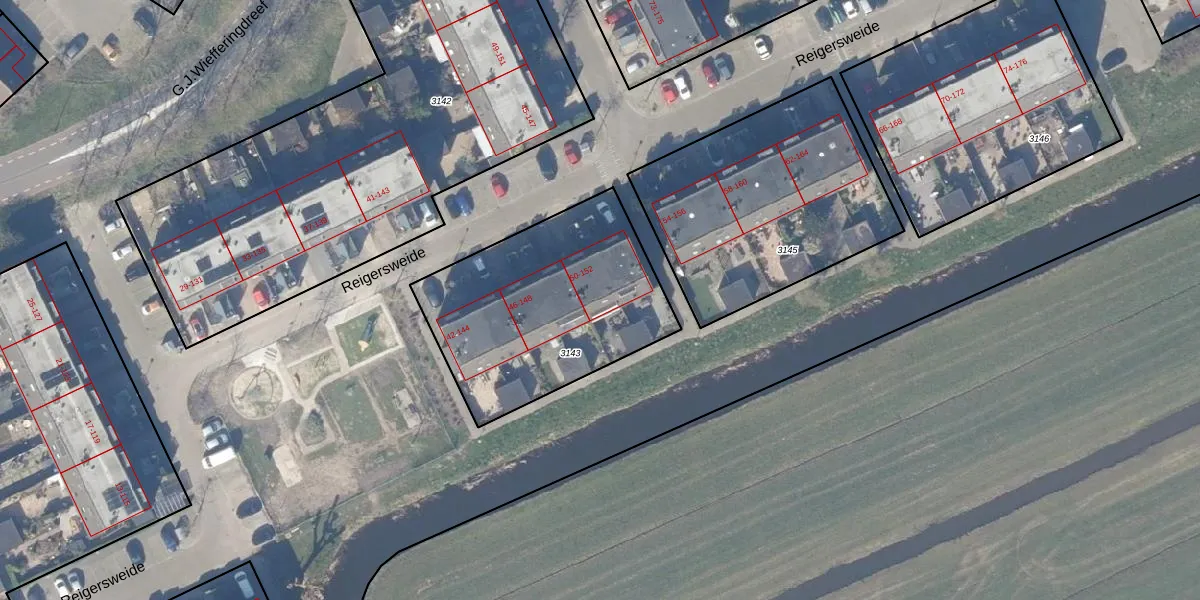 Het perceel waarop Reigersweide 150 staat heeft een oppervlakte van 986 m². Dit is een groot perceel. De perceeloppervlakte wordt geregistreerd door het Kadaster. Gedetailleerde informatie over de maten van dit perceel kunt u vinden in het rapport Kadastrale kaart met maatvoering van Reigersweide 150.