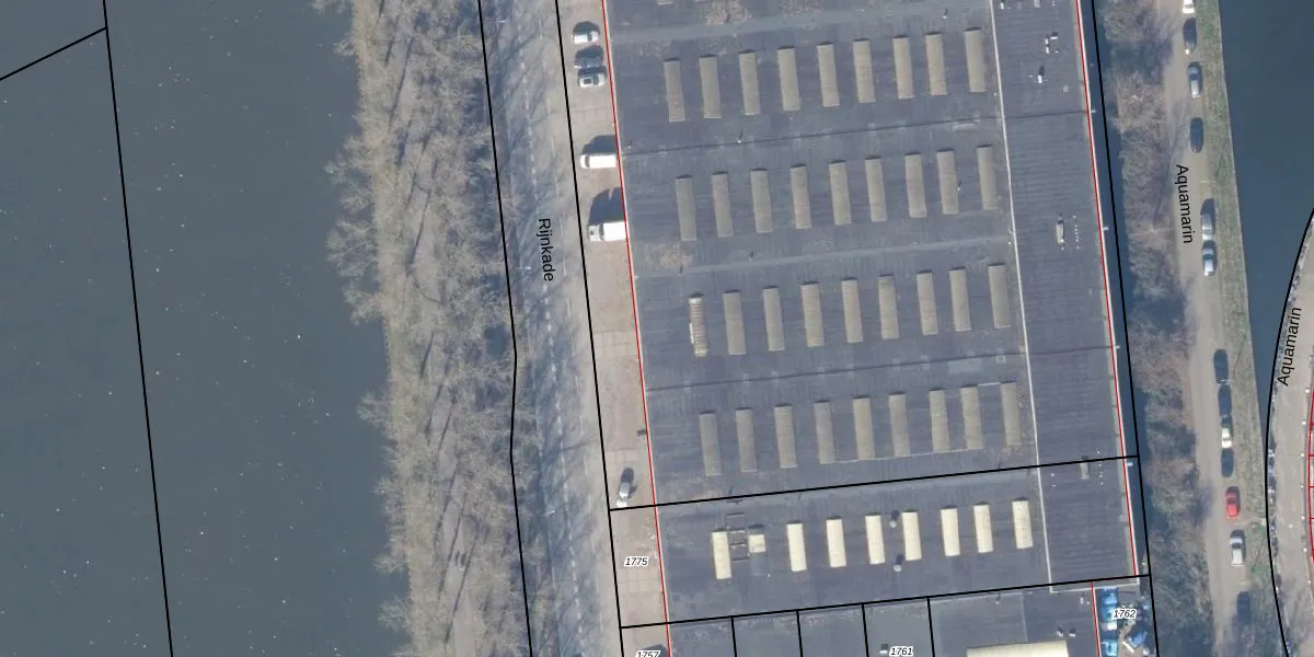 Het perceel waarop Rijnkade 170 staat heeft een oppervlakte van 7995 m². Dit is een zeer groot perceel. De perceeloppervlakte wordt geregistreerd door het Kadaster. Gedetailleerde informatie over de maten van dit perceel kunt u vinden in het rapport Kadastrale kaart met maatvoering van Rijnkade 170.