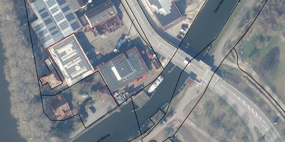 Het adres is gelegen op perceel 1726 in de sectie C en de kadastrale gemeente Weesp. De kadastrale aanduiding is aldus WEE02-C-1726. De oppervlakte van het perceel is 6655 m². Dat is groter dan gemiddeld in Weesp, waar de gemiddelde perceeloppervlakte op 2523,05 m² ligt. De grootste perceeloppervlakte in de kadastrale gemeente is 27,8 ha. De kleinste oppervlakte bedraagt 0 m². Op het perceel zijn 10 adressen aanwezig. De huidige grenzen van het perceel zijn digitaal in de Basisregistratie Kadaster (BRK) geregistreerd op 17-08-2011.
