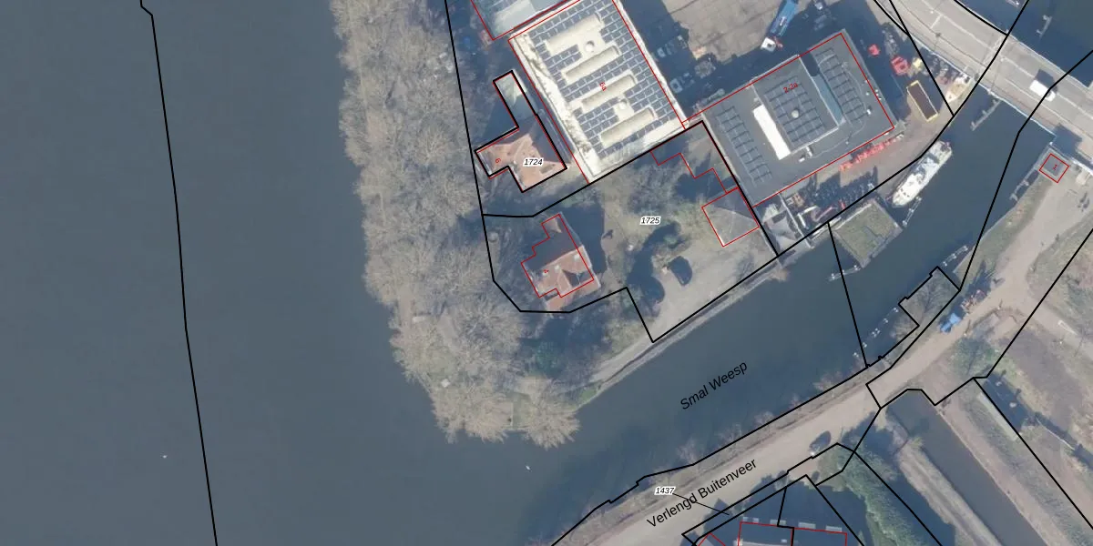 Het adres is gelegen op perceel 1725 in de sectie C en de kadastrale gemeente Weesp. De kadastrale aanduiding is aldus WEE02-C-1725. Het perceel is 1159 m² groot. Dat is kleiner dan de gemiddelde perceeloppervlakte in Weesp, dat op 2523,05 m² ligt. De grootste perceeloppervlakte in de kadastrale gemeente is 27,8 ha. De kleinste oppervlakte bedraagt 0 m². Er zijn geen andere adressen aanwezig op het perceel. In de Basisregistratie Kadaster (BRK) werden de grenzen van het perceel geregistreerd op 17-08-2011.