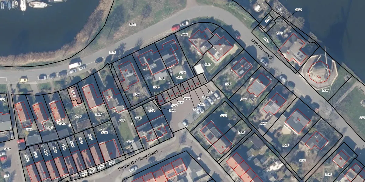 Simon de Vliegerlaan 53 is gelegen op kadastraal perceel WEE02B5643. Deze kadastrale aanduiding is uniek en wordt gebruikt door het Kadaster om eigendomsrechten en andere zakelijke rechten vast te leggen. Het perceel maakt onderdeel uit van de kadastrale gemeente Weesp.