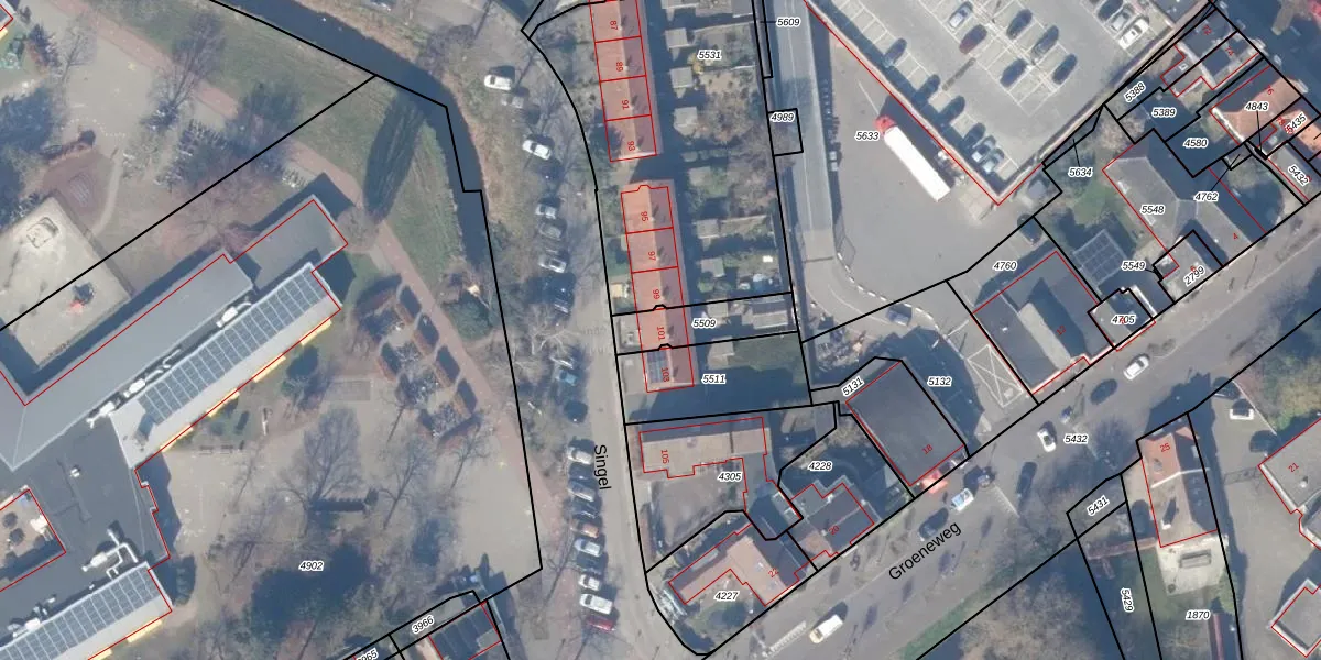 Het perceel waarop Singel 101 staat heeft een oppervlakte van 164 m². Dit is een middelgroot perceel. De perceeloppervlakte wordt geregistreerd door het Kadaster. Gedetailleerde informatie over de maten van dit perceel kunt u vinden in het rapport Kadastrale kaart met maatvoering van Singel 101.