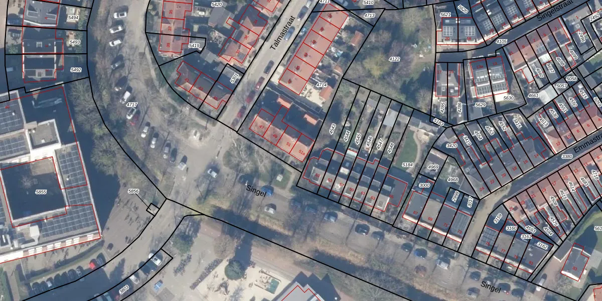 Het perceel waarop Singel 51-a staat heeft een oppervlakte van 1151 m². Dit is een zeer groot perceel. De perceeloppervlakte wordt geregistreerd door het Kadaster. Gedetailleerde informatie over de maten van dit perceel kunt u vinden in het rapport Kadastrale kaart met maatvoering van Singel 51-a.