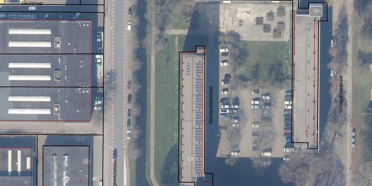 Het perceel waarop Sinnigvelderstraat 123 staat heeft een oppervlakte van 1830 m². Dit is een zeer groot perceel. De perceeloppervlakte wordt geregistreerd door het Kadaster. Gedetailleerde informatie over de maten van dit perceel kunt u vinden in het rapport Kadastrale kaart met maatvoering van Sinnigvelderstraat 123.