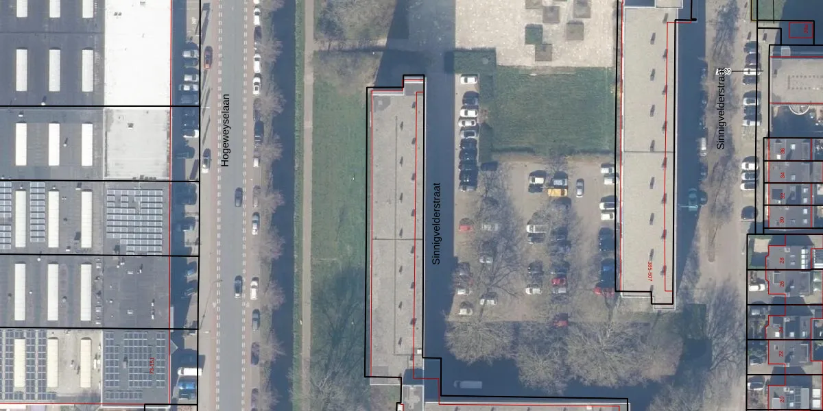 Het perceel waarop Sinnigvelderstraat 193-g staat heeft een oppervlakte van 2932 m². Dit is een zeer groot perceel. De perceeloppervlakte wordt geregistreerd door het Kadaster. Gedetailleerde informatie over de maten van dit perceel kunt u vinden in het rapport Kadastrale kaart met maatvoering van Sinnigvelderstraat 193-g.