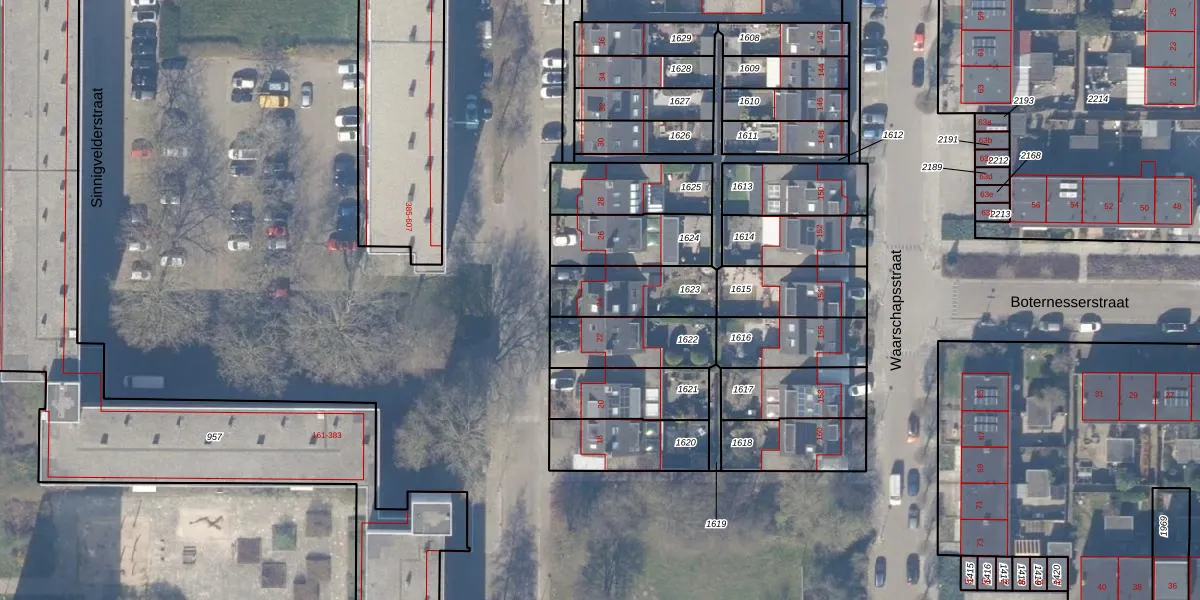 Gebruik de zoekbalk of klik op een perceel voor informatie over de adressen binnen dit perceel.