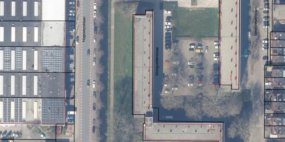 Het perceel waarop Sinnigvelderstraat 267 staat heeft een oppervlakte van 2932 m². Dit is een zeer groot perceel. De perceeloppervlakte wordt geregistreerd door het Kadaster. Gedetailleerde informatie over de maten van dit perceel kunt u vinden in het rapport Kadastrale kaart met maatvoering van Sinnigvelderstraat 267.