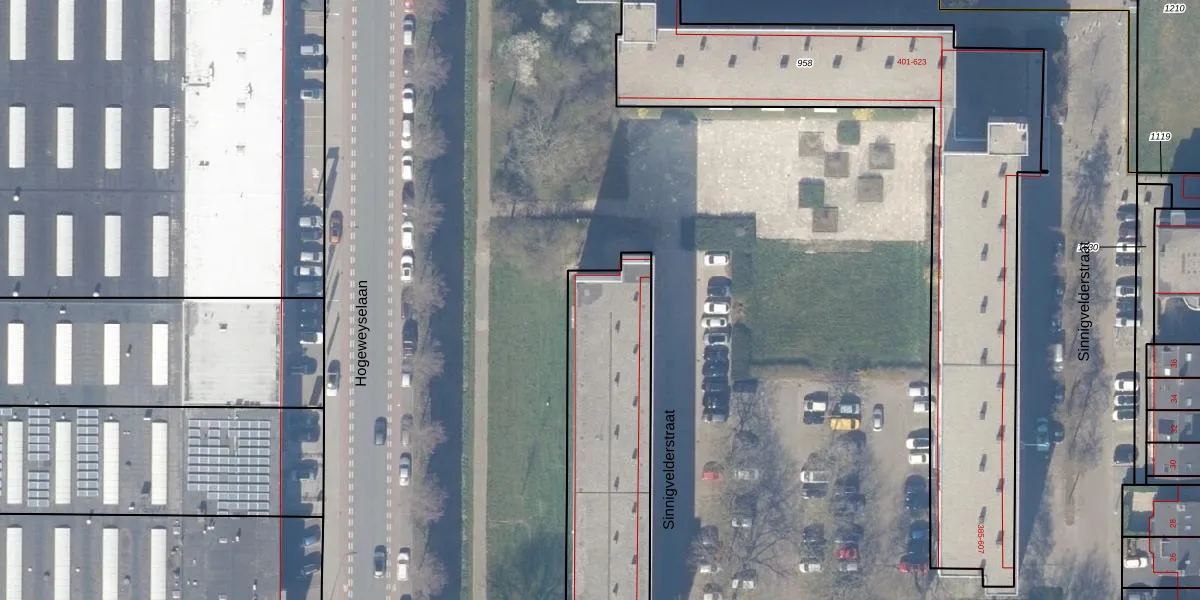 Het perceel waarop Sinnigvelderstraat 319 staat heeft een oppervlakte van 2932 m². Dit is een zeer groot perceel. De perceeloppervlakte wordt geregistreerd door het Kadaster. Gedetailleerde informatie over de maten van dit perceel kunt u vinden in het rapport Kadastrale kaart met maatvoering van Sinnigvelderstraat 319.