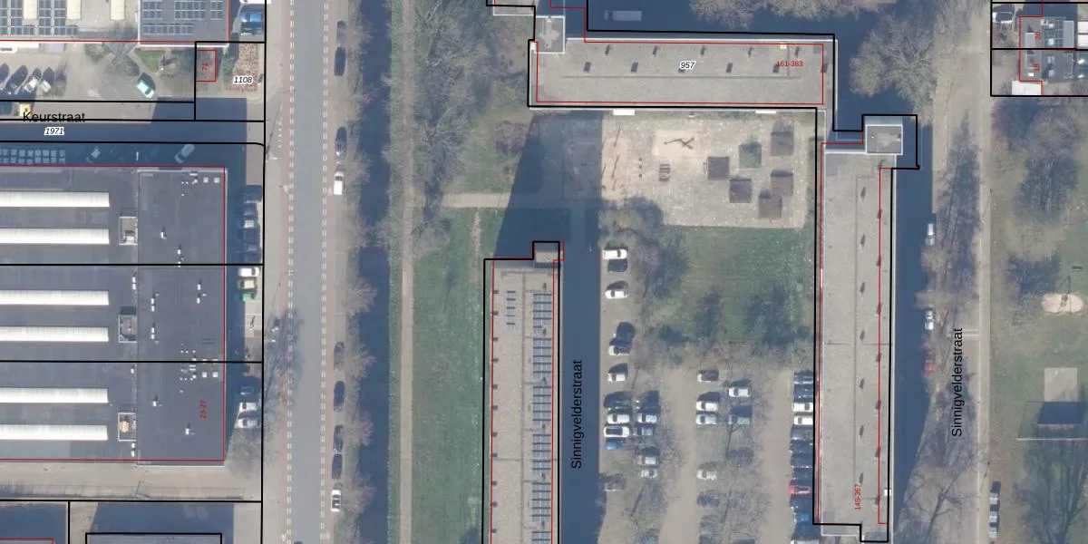 Het perceel waarop Sinnigvelderstraat 37-g staat heeft een oppervlakte van 1830 m². Dit is een zeer groot perceel. De perceeloppervlakte wordt geregistreerd door het Kadaster. Gedetailleerde informatie over de maten van dit perceel kunt u vinden in het rapport Kadastrale kaart met maatvoering van Sinnigvelderstraat 37-g.