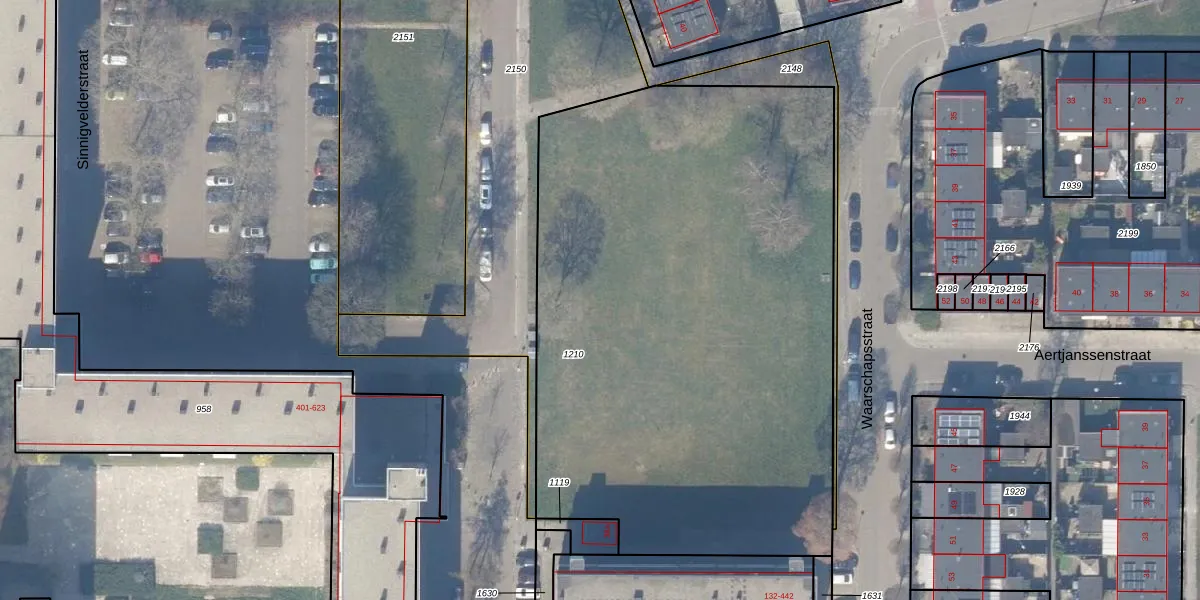 Het perceel waarop Sinnigvelderstraat 38-D-6 staat heeft een oppervlakte van 3770 m². Dit is een zeer groot perceel. De perceeloppervlakte wordt geregistreerd door het Kadaster. Gedetailleerde informatie over de maten van dit perceel kunt u vinden in het rapport Kadastrale kaart met maatvoering van Sinnigvelderstraat 38-D-6.