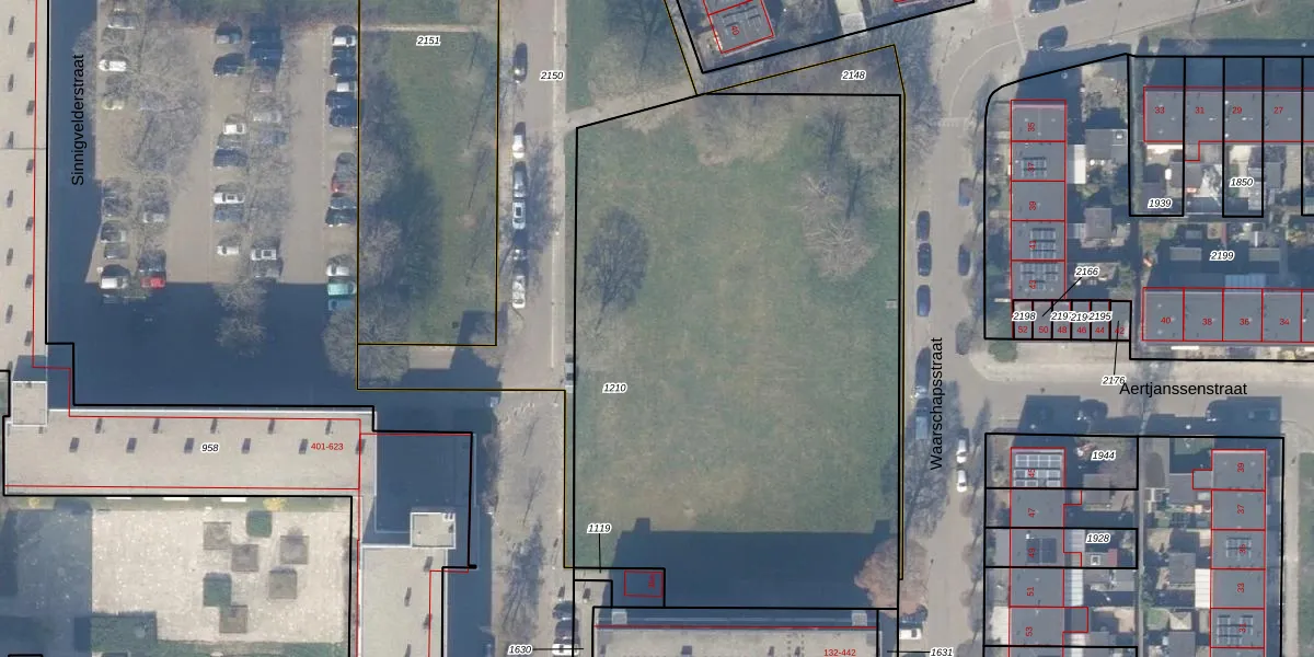 Het perceel waarop Sinnigvelderstraat 38-D-8 staat heeft een oppervlakte van 3770 m². Dit is een zeer groot perceel. De perceeloppervlakte wordt geregistreerd door het Kadaster. Gedetailleerde informatie over de maten van dit perceel kunt u vinden in het rapport Kadastrale kaart met maatvoering van Sinnigvelderstraat 38-D-8.