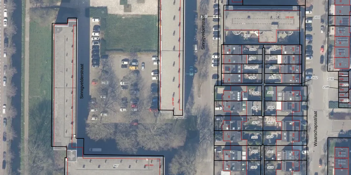 Het perceel waarop Sinnigvelderstraat 387 staat heeft een oppervlakte van 3112 m². Dit is een zeer groot perceel. De perceeloppervlakte wordt geregistreerd door het Kadaster. Gedetailleerde informatie over de maten van dit perceel kunt u vinden in het rapport Kadastrale kaart met maatvoering van Sinnigvelderstraat 387.