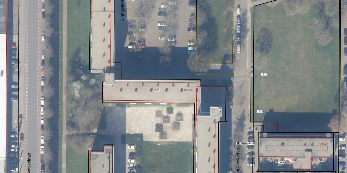Sinnigvelderstraat 403 is gelegen op kadastraal perceel WEE02C958. Deze kadastrale aanduiding is uniek en wordt gebruikt door het Kadaster om eigendomsrechten en andere zakelijke rechten vast te leggen. Het perceel maakt onderdeel uit van de kadastrale gemeente Weesp.