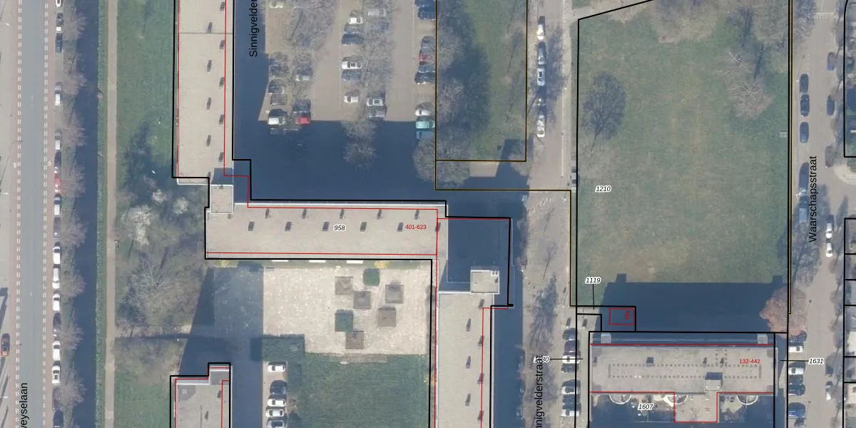 Het perceel waarop Sinnigvelderstraat 405-g staat heeft een oppervlakte van 3112 m². Dit is een zeer groot perceel. De perceeloppervlakte wordt geregistreerd door het Kadaster. Gedetailleerde informatie over de maten van dit perceel kunt u vinden in het rapport Kadastrale kaart met maatvoering van Sinnigvelderstraat 405-g.