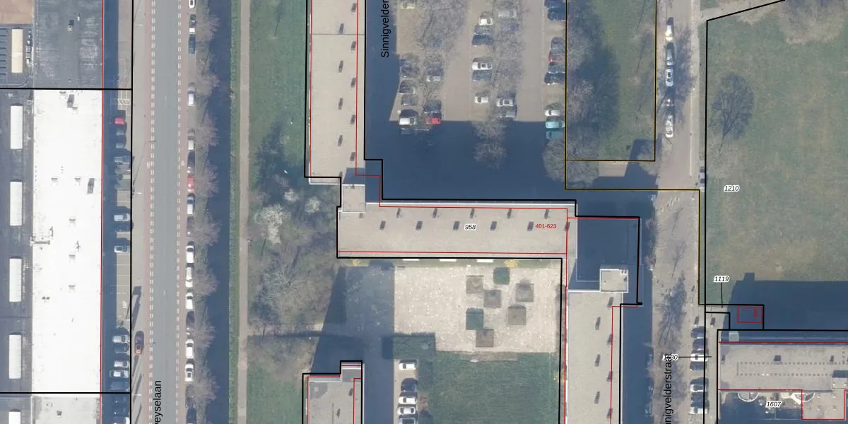 Het perceel waarop Sinnigvelderstraat 419-g staat heeft een oppervlakte van 3112 m². Dit is een zeer groot perceel. De perceeloppervlakte wordt geregistreerd door het Kadaster. Gedetailleerde informatie over de maten van dit perceel kunt u vinden in het rapport Kadastrale kaart met maatvoering van Sinnigvelderstraat 419-g.