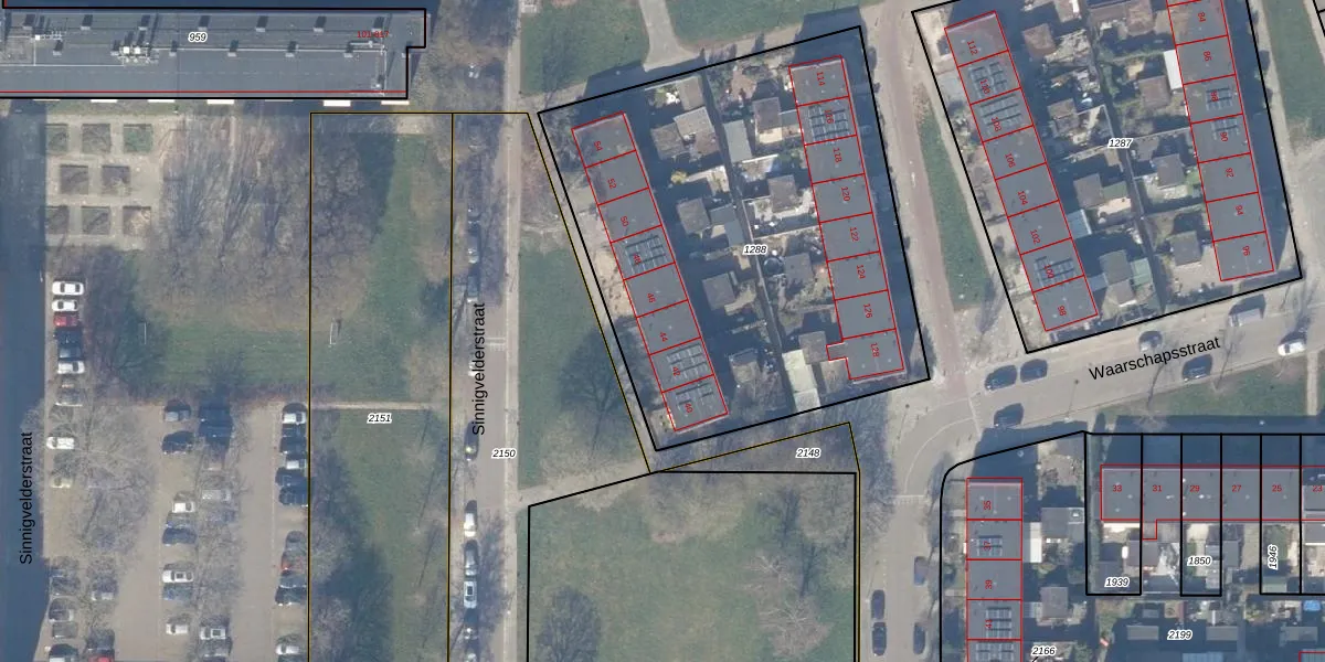 Het perceel waarop Sinnigvelderstraat 44 staat heeft een oppervlakte van 2511 m². Dit is een zeer groot perceel. De perceeloppervlakte wordt geregistreerd door het Kadaster. Gedetailleerde informatie over de maten van dit perceel kunt u vinden in het rapport Kadastrale kaart met maatvoering van Sinnigvelderstraat 44.