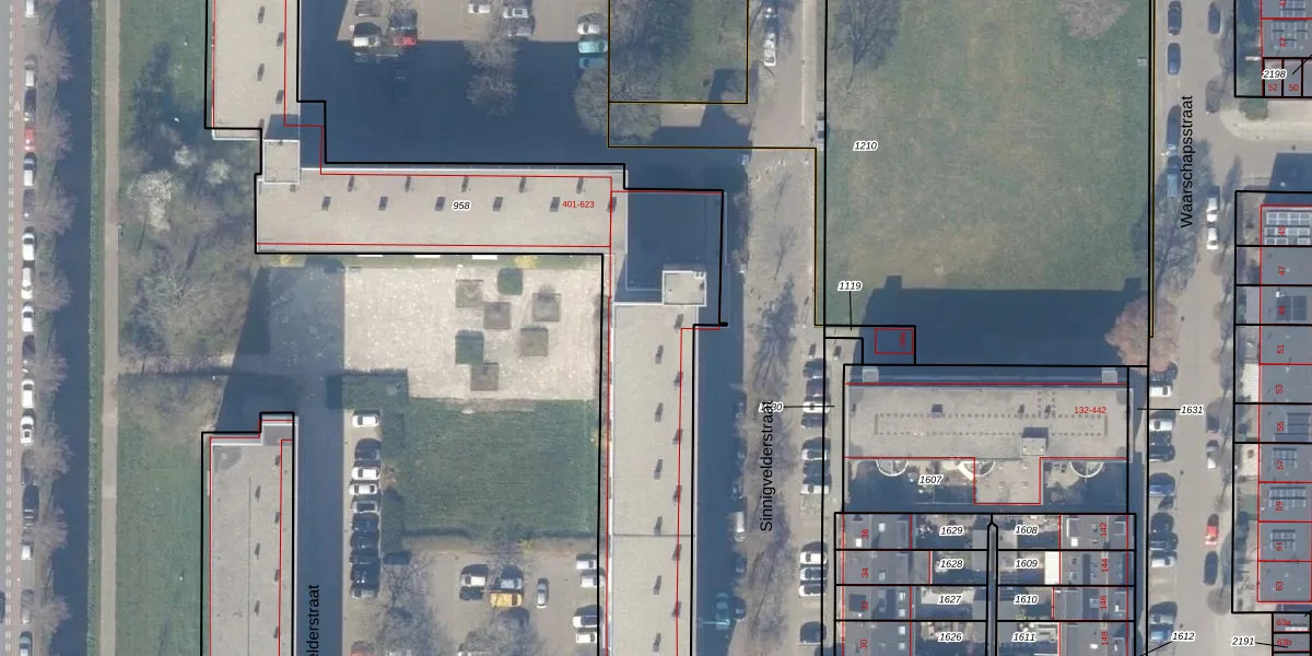 Sinnigvelderstraat 443 is gelegen op kadastraal perceel WEE02C958. Deze kadastrale aanduiding is uniek en wordt gebruikt door het Kadaster om eigendomsrechten en andere zakelijke rechten vast te leggen. Het perceel maakt onderdeel uit van de kadastrale gemeente Weesp.
