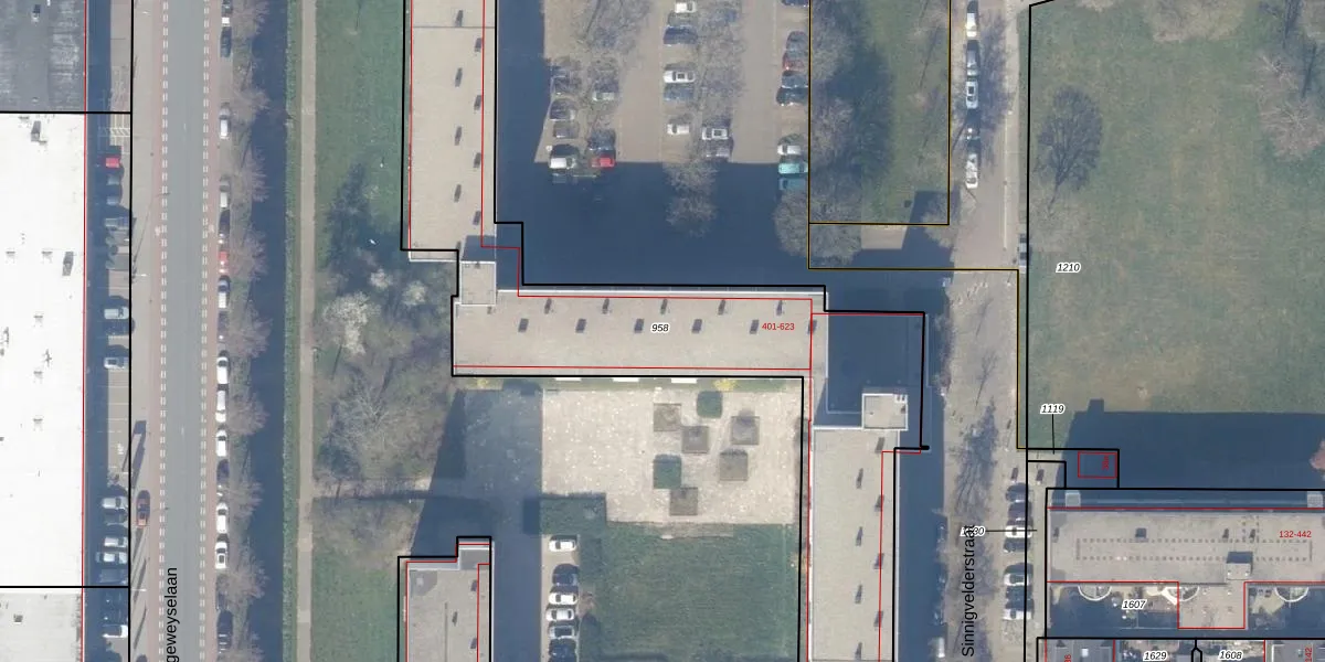 Het perceel waarop Sinnigvelderstraat 449 staat heeft een oppervlakte van 3112 m². Dit is een zeer groot perceel. De perceeloppervlakte wordt geregistreerd door het Kadaster. Gedetailleerde informatie over de maten van dit perceel kunt u vinden in het rapport Kadastrale kaart met maatvoering van Sinnigvelderstraat 449.