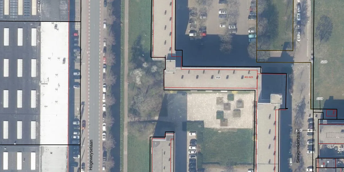 Sinnigvelderstraat 543 is gelegen op kadastraal perceel WEE02C958. Deze kadastrale aanduiding is uniek en wordt gebruikt door het Kadaster om eigendomsrechten en andere zakelijke rechten vast te leggen. Het perceel maakt onderdeel uit van de kadastrale gemeente Weesp.
