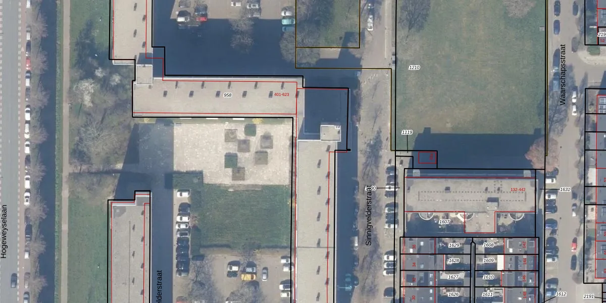 Het adres is gelegen op perceel 958 in de sectie C en de kadastrale gemeente Weesp. De kadastrale aanduiding is aldus WEE02-C-958. De gemiddelde perceeloppervlakte in de kadastrale gemeente Weesp is 2523,05 m². Dit perceel is met zijn 3112 m² dus groter dan gemiddeld. Het grootste perceel in de kadastrale gemeente is 27,8 ha. Het kleinste perceel heeft een oppervlakte van 0 m². Op het perceel zijn 151 adressen aanwezig. In de Basisregistratie Kadaster (BRK) werden de grenzen van het perceel geregistreerd op 01-02-2001.