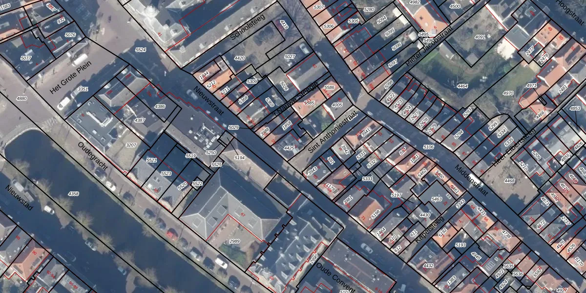 Het perceel waarop Sint Anthoniestraat 2 staat heeft een oppervlakte van 77 m². Dit is een klein perceel. De perceeloppervlakte wordt geregistreerd door het Kadaster. Gedetailleerde informatie over de maten van dit perceel kunt u vinden in het rapport Kadastrale kaart met maatvoering van Sint Anthoniestraat 2.
