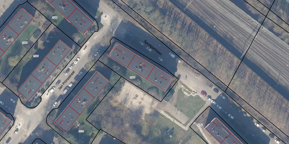 Sportparklaan 189 is gelegen op kadastraal perceel WEE02B2569. Deze kadastrale aanduiding is uniek en wordt gebruikt door het Kadaster om eigendomsrechten en andere zakelijke rechten vast te leggen. Het perceel maakt onderdeel uit van de kadastrale gemeente Weesp.