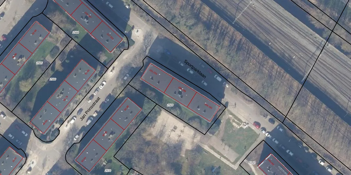 Sportparklaan 195 is gelegen op kadastraal perceel WEE02B2569. Deze kadastrale aanduiding is uniek en wordt gebruikt door het Kadaster om eigendomsrechten en andere zakelijke rechten vast te leggen. Het perceel maakt onderdeel uit van de kadastrale gemeente Weesp.