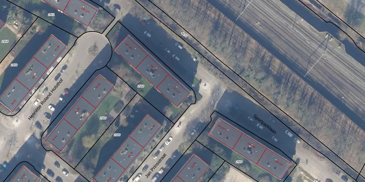 Sportparklaan 217 is gelegen op kadastraal perceel WEE02B2564. Deze kadastrale aanduiding is uniek en wordt gebruikt door het Kadaster om eigendomsrechten en andere zakelijke rechten vast te leggen. Het perceel maakt onderdeel uit van de kadastrale gemeente Weesp.