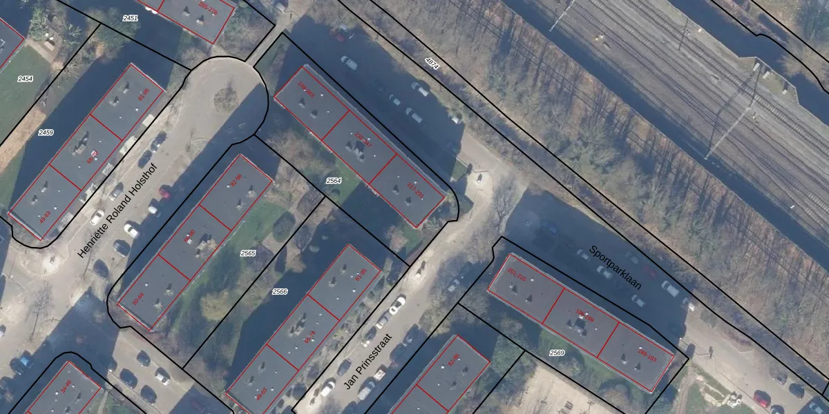 Het perceel waarop Sportparklaan 221 staat heeft een oppervlakte van 1245 m². Dit is een zeer groot perceel. De perceeloppervlakte wordt geregistreerd door het Kadaster. Gedetailleerde informatie over de maten van dit perceel kunt u vinden in het rapport Kadastrale kaart met maatvoering van Sportparklaan 221.