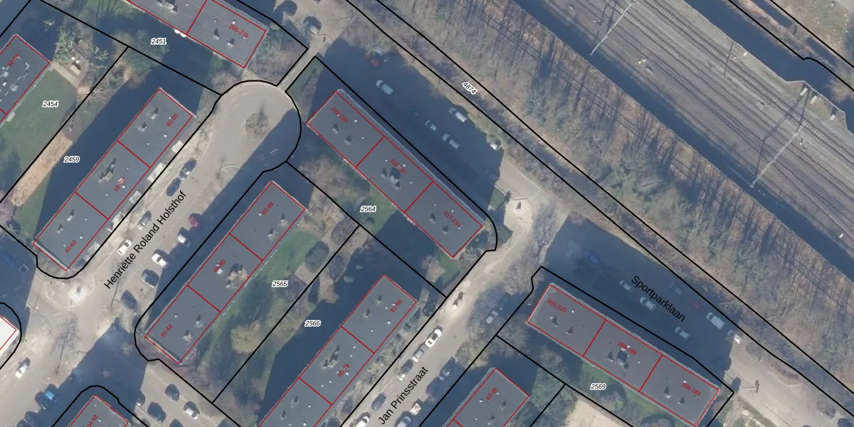 Sportparklaan 229 is gelegen op kadastraal perceel WEE02B2564. Deze kadastrale aanduiding is uniek en wordt gebruikt door het Kadaster om eigendomsrechten en andere zakelijke rechten vast te leggen. Het perceel maakt onderdeel uit van de kadastrale gemeente Weesp.