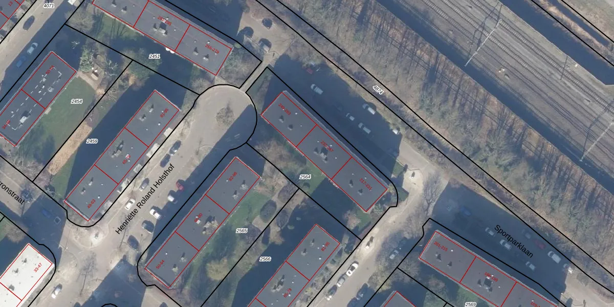 Sportparklaan 247 is gelegen op kadastraal perceel WEE02B2564. Deze kadastrale aanduiding is uniek en wordt gebruikt door het Kadaster om eigendomsrechten en andere zakelijke rechten vast te leggen. Het perceel maakt onderdeel uit van de kadastrale gemeente Weesp.