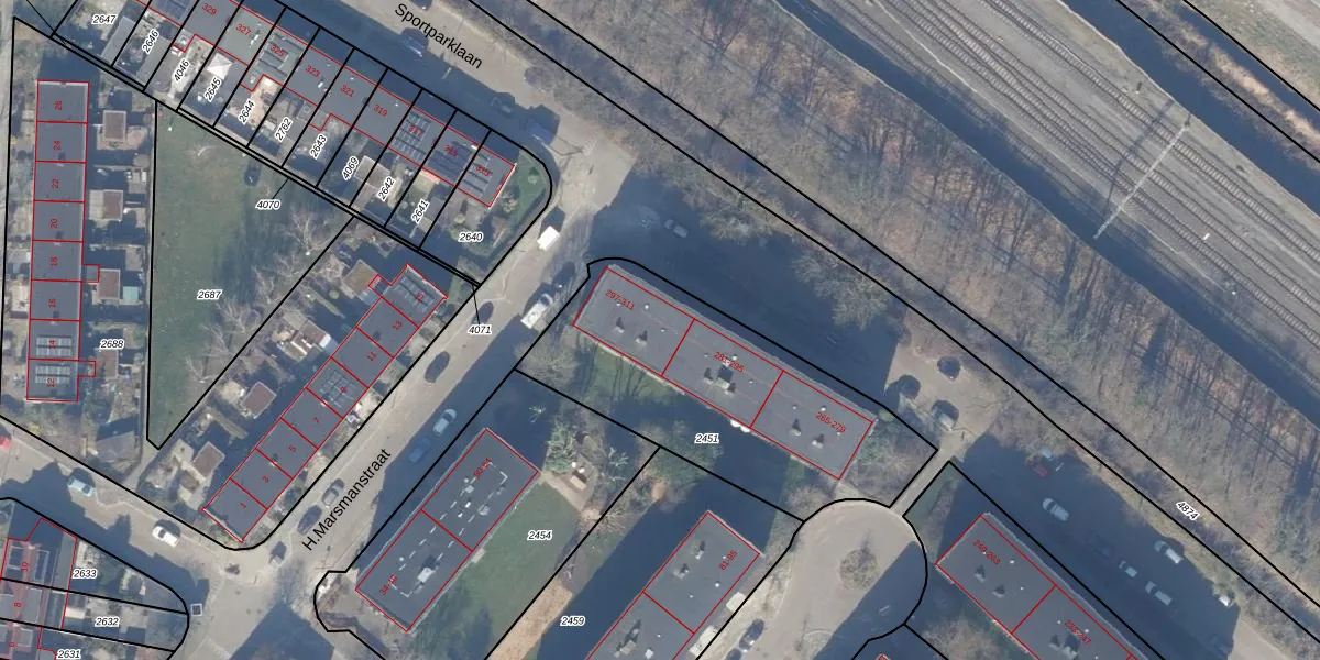 Het perceel waarop Sportparklaan 299 staat heeft een oppervlakte van 1229 m². Dit is een zeer groot perceel. De perceeloppervlakte wordt geregistreerd door het Kadaster. Gedetailleerde informatie over de maten van dit perceel kunt u vinden in het rapport Kadastrale kaart met maatvoering van Sportparklaan 299.