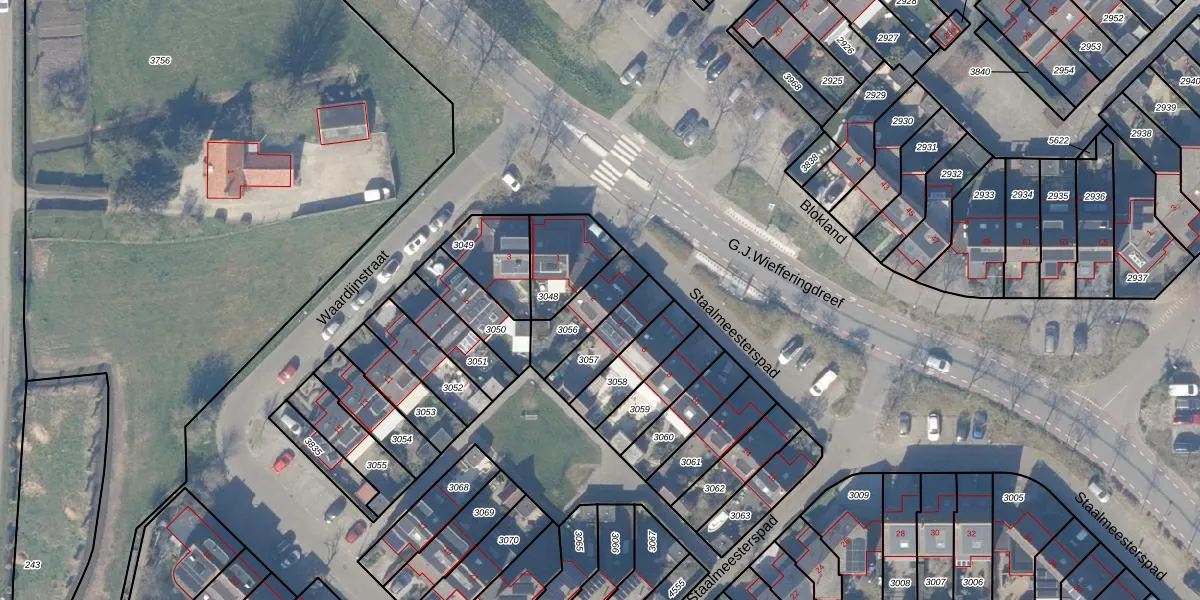 Gebruik de zoekbalk of klik op een perceel voor informatie over de adressen binnen dit perceel.