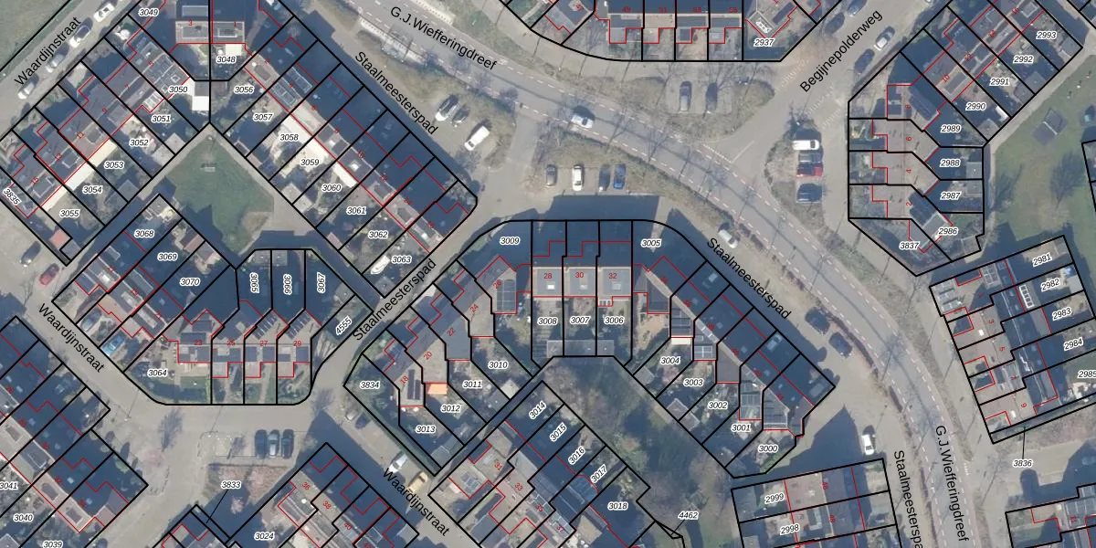 Gebruik de zoekbalk of klik op een perceel voor informatie over de adressen binnen dit perceel.