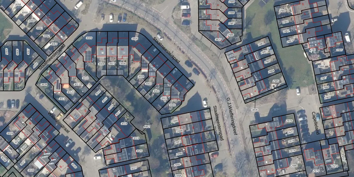 Staalmeesterspad 44 is gelegen op kadastraal perceel WEE02B3000. Deze kadastrale aanduiding is uniek en wordt gebruikt door het Kadaster om eigendomsrechten en andere zakelijke rechten vast te leggen. Het perceel maakt onderdeel uit van de kadastrale gemeente Weesp.