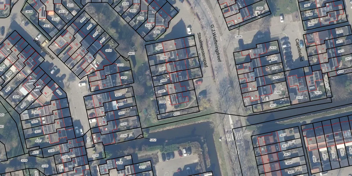 Staalmeesterspad 54 is gelegen op kadastraal perceel WEE02B2995. Deze kadastrale aanduiding is uniek en wordt gebruikt door het Kadaster om eigendomsrechten en andere zakelijke rechten vast te leggen. Het perceel maakt onderdeel uit van de kadastrale gemeente Weesp.