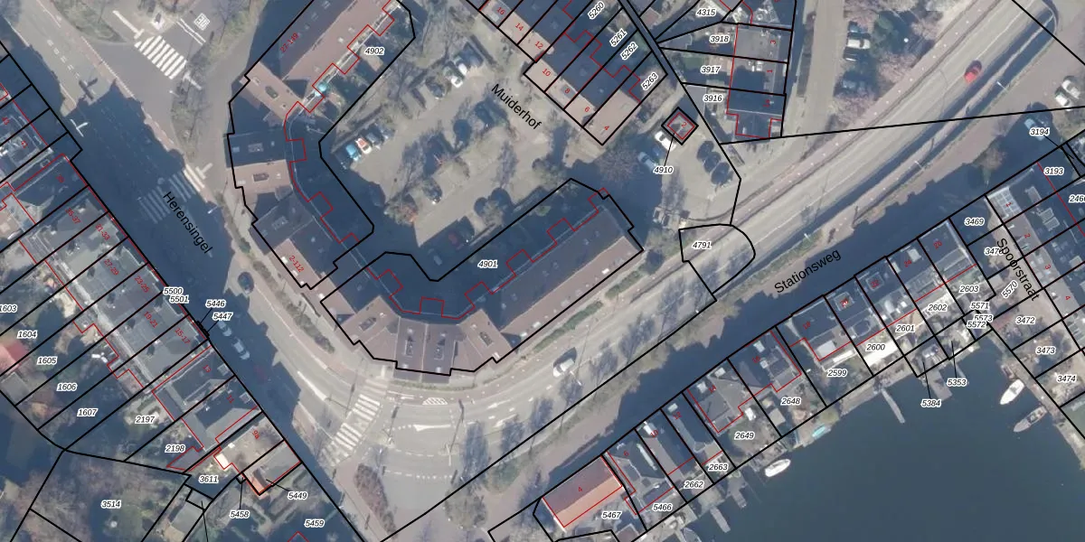 Het adres is gelegen op perceel 4901 in de sectie A en de kadastrale gemeente Weesp. De kadastrale aanduiding is aldus WEE02-A-4901. Het perceel is kleiner dan gemiddeld in Weesp. Het perceel is 1060 m² groot, terwijl het gemiddelde ligt op 2523,05 m². Het kleinste perceel in de kadastrale gemeente is 0 m² groot. De grootste perceeloppervlakte is 27,8 ha. Er zijn 22 adressen aanwezig op het perceel. De huidige grenzen van het perceel zijn digitaal in de Basisregistratie Kadaster (BRK) geregistreerd op 10-12-1998.