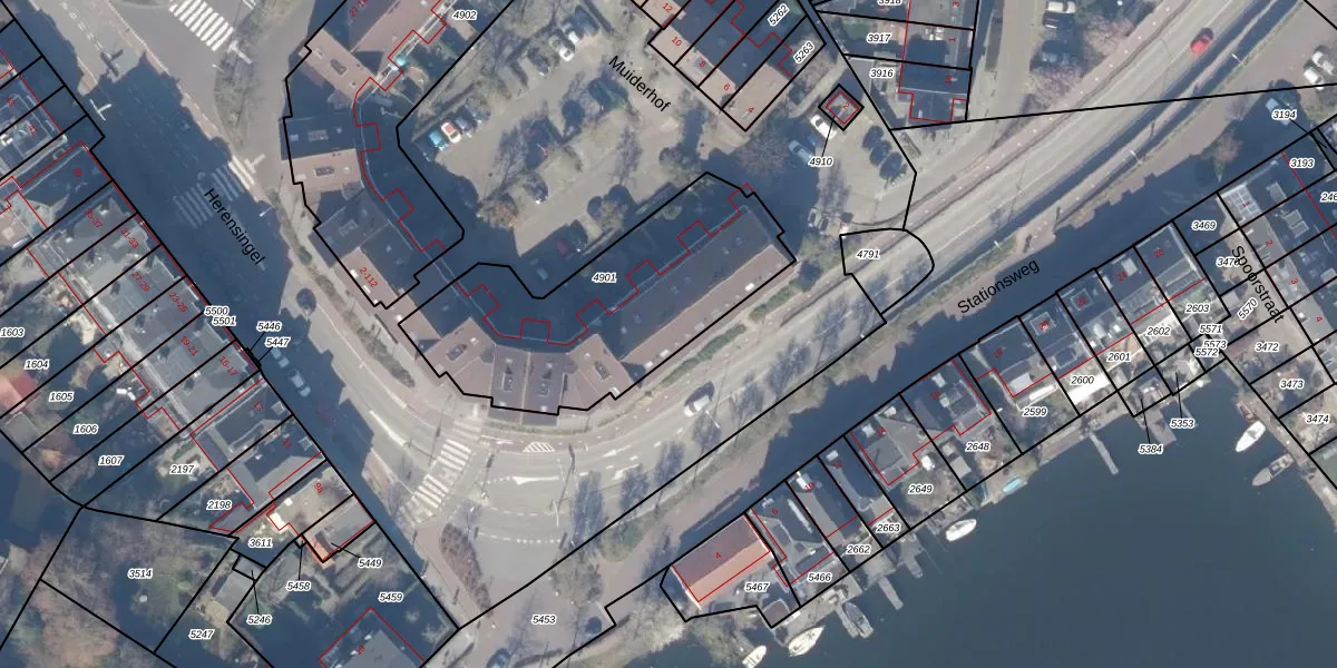 Het adres is gelegen op perceel 4901 in de sectie A en de kadastrale gemeente Weesp. De kadastrale aanduiding is aldus WEE02-A-4901. Het perceel is kleiner dan gemiddeld in Weesp. Het perceel is 1060 m² groot, terwijl het gemiddelde ligt op 2523,05 m². Het kleinste perceel in de kadastrale gemeente is 0 m² groot. De grootste perceeloppervlakte is 27,8 ha. Op het perceel liggen in totaal 22 adressen. De huidige grenzen van het perceel zijn digitaal in de Basisregistratie Kadaster (BRK) geregistreerd op 10-12-1998.