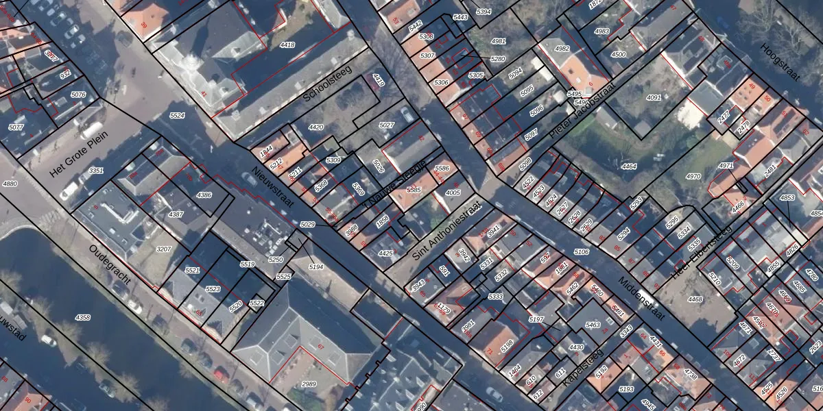 Het adres is gelegen op perceel 5585 in de sectie A en de kadastrale gemeente Weesp. De kadastrale aanduiding is aldus WEE02-A-5585. De gemiddelde perceelgrootte in Weesp is 2518,58 m². Dit perceel is kleiner: de perceeloppervlakte bedraagt 67 m². De grootste perceeloppervlakte in de kadastrale gemeente is 27,8 ha. De kleinste oppervlakte bedraagt 0 m². Op het perceel liggen in totaal 6 adressen. In de Basisregistratie Kadaster (BRK) werden de grenzen van het perceel geregistreerd op 22-10-2020.