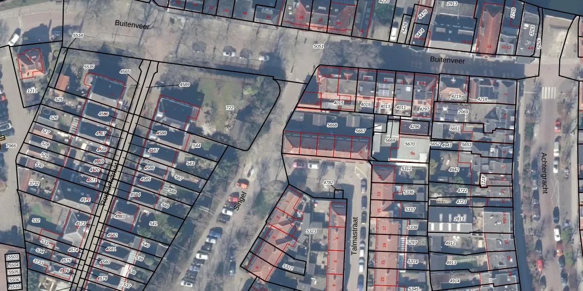 Talmastraat 1 is gelegen op kadastraal perceel WEE02A5668. Deze kadastrale aanduiding is uniek en wordt gebruikt door het Kadaster om eigendomsrechten en andere zakelijke rechten vast te leggen. Het perceel maakt onderdeel uit van de kadastrale gemeente Weesp.