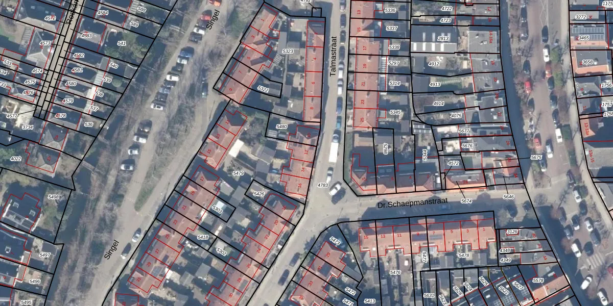 Het perceel waarop Talmastraat 12 staat heeft een oppervlakte van 1300 m². Dit is een zeer groot perceel. De perceeloppervlakte wordt geregistreerd door het Kadaster. Gedetailleerde informatie over de maten van dit perceel kunt u vinden in het rapport Kadastrale kaart met maatvoering van Talmastraat 12.